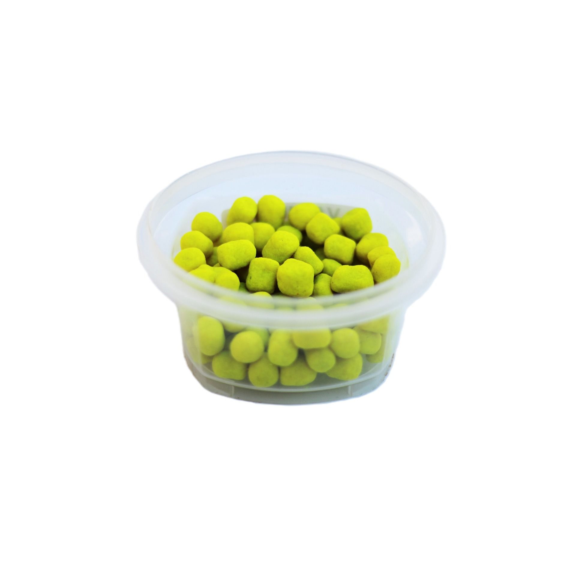 Plovoucí měkčené peletky nápadných fluo barev - zeleno/žlutá a oranžová dle příchutě. Mají silný chuťový, pachový a optický účinek.